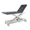 Table de massage OLERON 2 plans avec châssis ciseaux non montée : confort optimal grâce à la mousse de densité moyenne et au dossier réglable, fiabilité assurée par le châssis en acier renforcé et mise sur roulettes pratique pour les déplacements. Livrée avec la sellerie et le dossier à fixer.